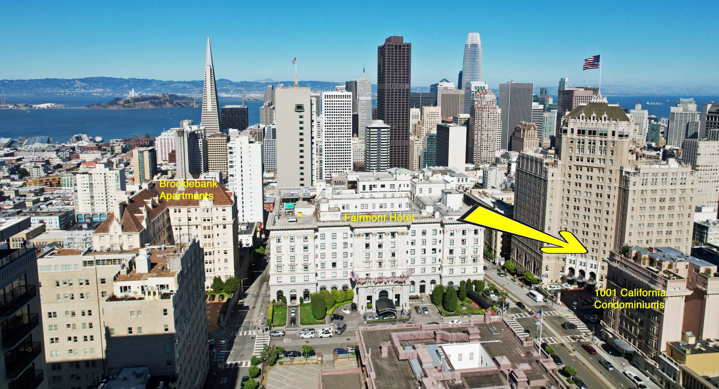 … and Now, this wide view shows the Brocklebank at left, 1001 California Condominiums at right and the Fairmont rooftop from where the above window photo was taken.