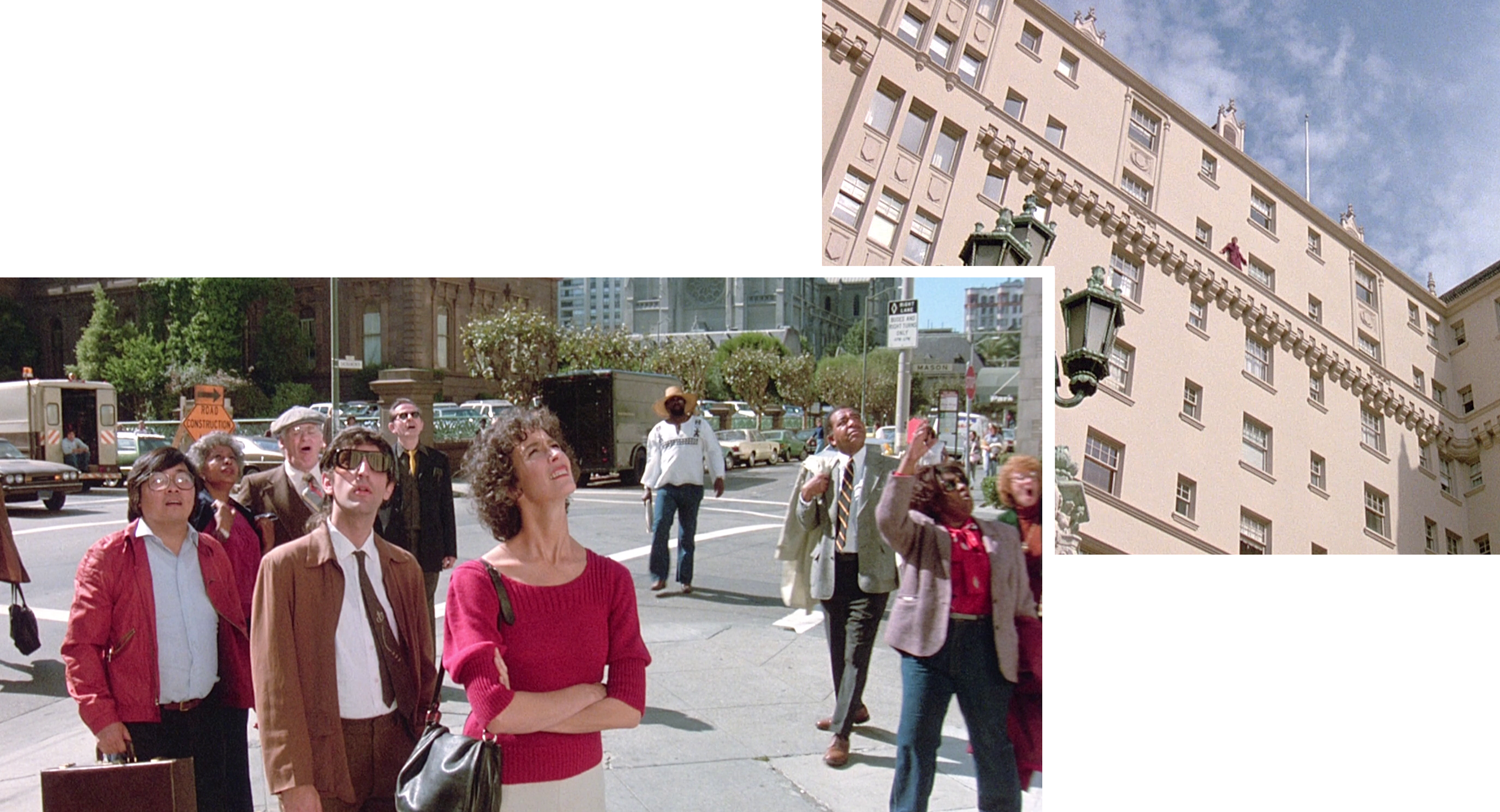 The chase scenes were filmed throughout the Promenade and Lobby levels of One, Two and Three Embarcadero Center at the north end of the Financial District. In addition to the Hyatt Regency Hotel, aka Five Embarcadero Center, the office complex now includes Four Embarcadero Center and Embarcadero West, both of which were yet to be built when the movie was filmed.