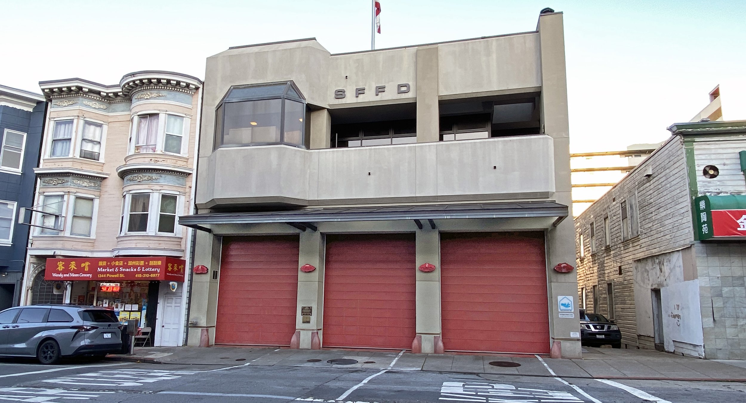 … and Now, this is Fire Station 2 at 1340 Powell Street near Broadway on the edge of Chinatown.