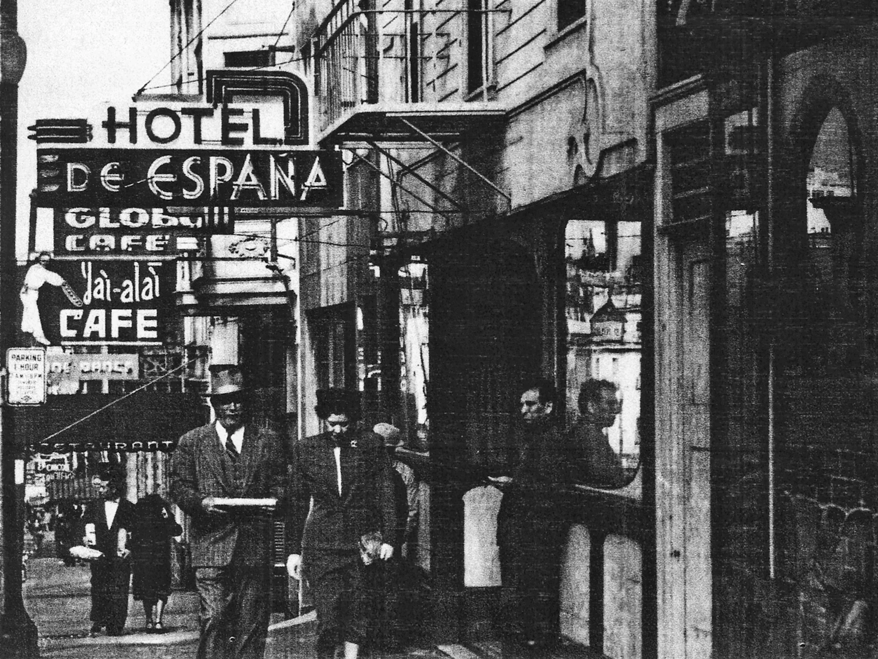 ... a vintage photo ... in this 1940s photo there's a clear view of the Jai-Alai cafe sign at 761 Broadway. Compare it to the distant view in the Then image above.