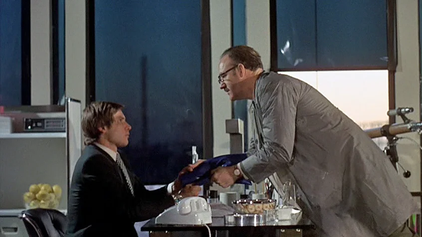 Caul has succeeded in extracting and cleaning up his surreptitious recording of the young couple's Union Square conversation but having listened to them over and over he is increasingly concerned that some harm may come to them. With a certain amount of trepidation he heads to the Director's office to deliver the tapes.