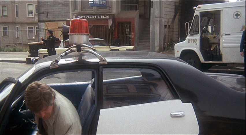 Then ... Apparently hostage negotiation was not part of the Police Department's job description in the 1970s - a fierce firefight ensues with multiple fatalities on both sides ending only when the suspect is shot. Across the street an ambulance pulls up to 1727 Laguna where we see that it had a store, Coast Camera & Radio, on its first floor.