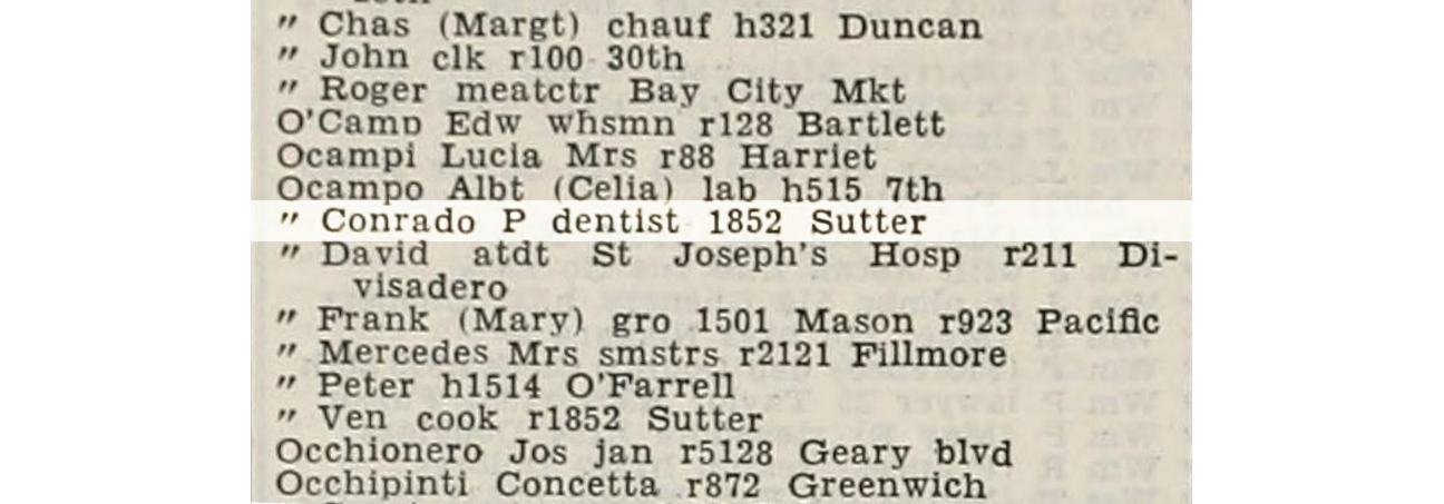 Here’s the 1935 city directory listing of dentist Conrado P. Ocampo.